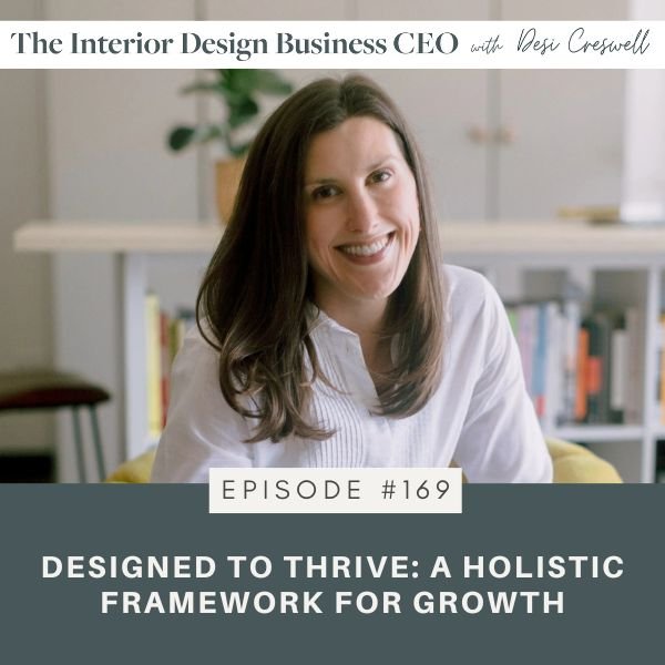This episode, I'll be honest, it is longer than others, but it is essentially a free masterclass. I'm going to walk you through each element of Designed to Thrive, why it matters, how to use it as a lens for any challenge or goal you're facing, and also how to bring it all together so you know what to do next. You can listen to this all at once or break it into chunks, but if you're serious about building a thriving interior design business, one that supports your life instead of consuming it, this framework is definitely worth your time.